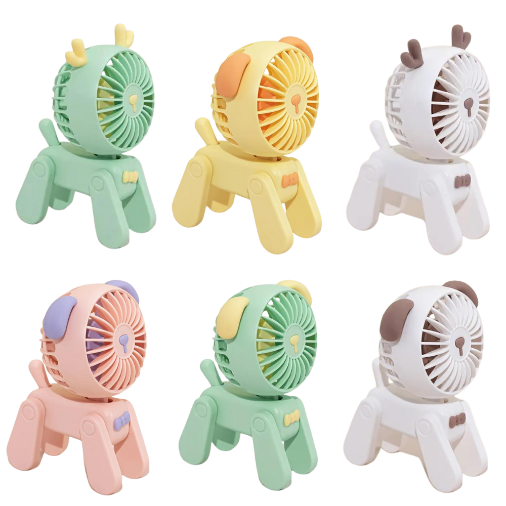 Cute USB Rechargeable Desk Fan – Adorable Puppy Design, 3-Speed, Ideal for Dorm and Home Decor