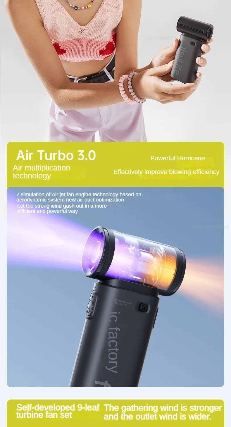 Unleash powerful airflow with the JISULIFE PowerBlast, an ultra high-speed portable USB mini electric fan designed for energy efficiency and exceptional performance. Perfect for outdoor activities, travel, or simply cooling down at home or office, this compact yet powerful fan ensures superior comfort wherever you are.