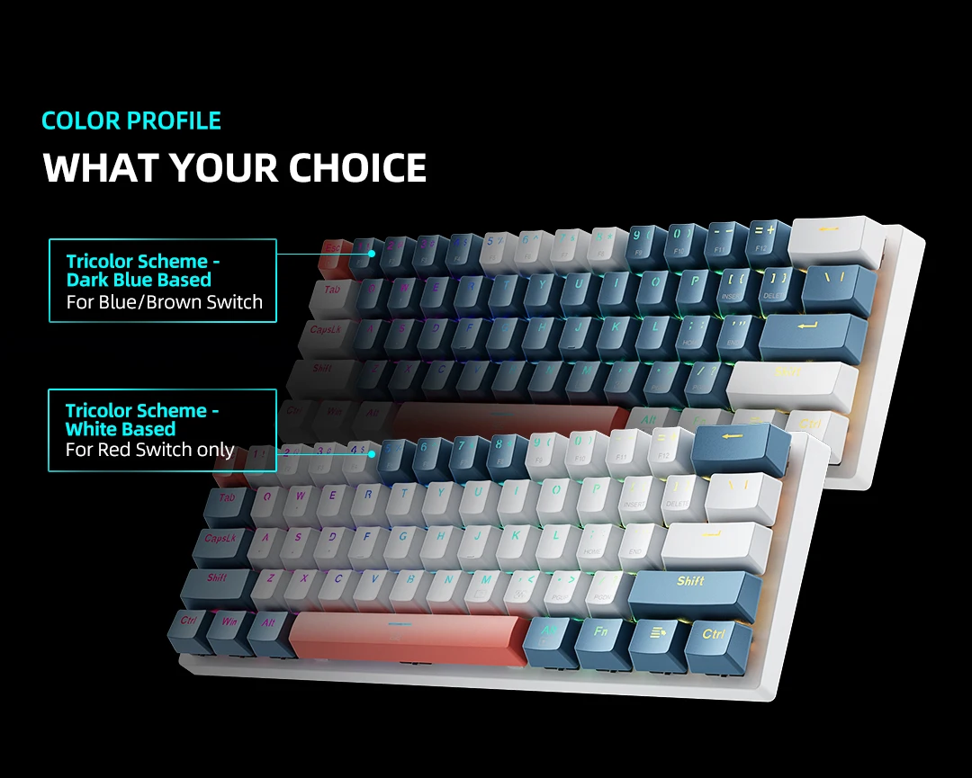 - Material: PBT+ABS for keycaps, ensuring durability.