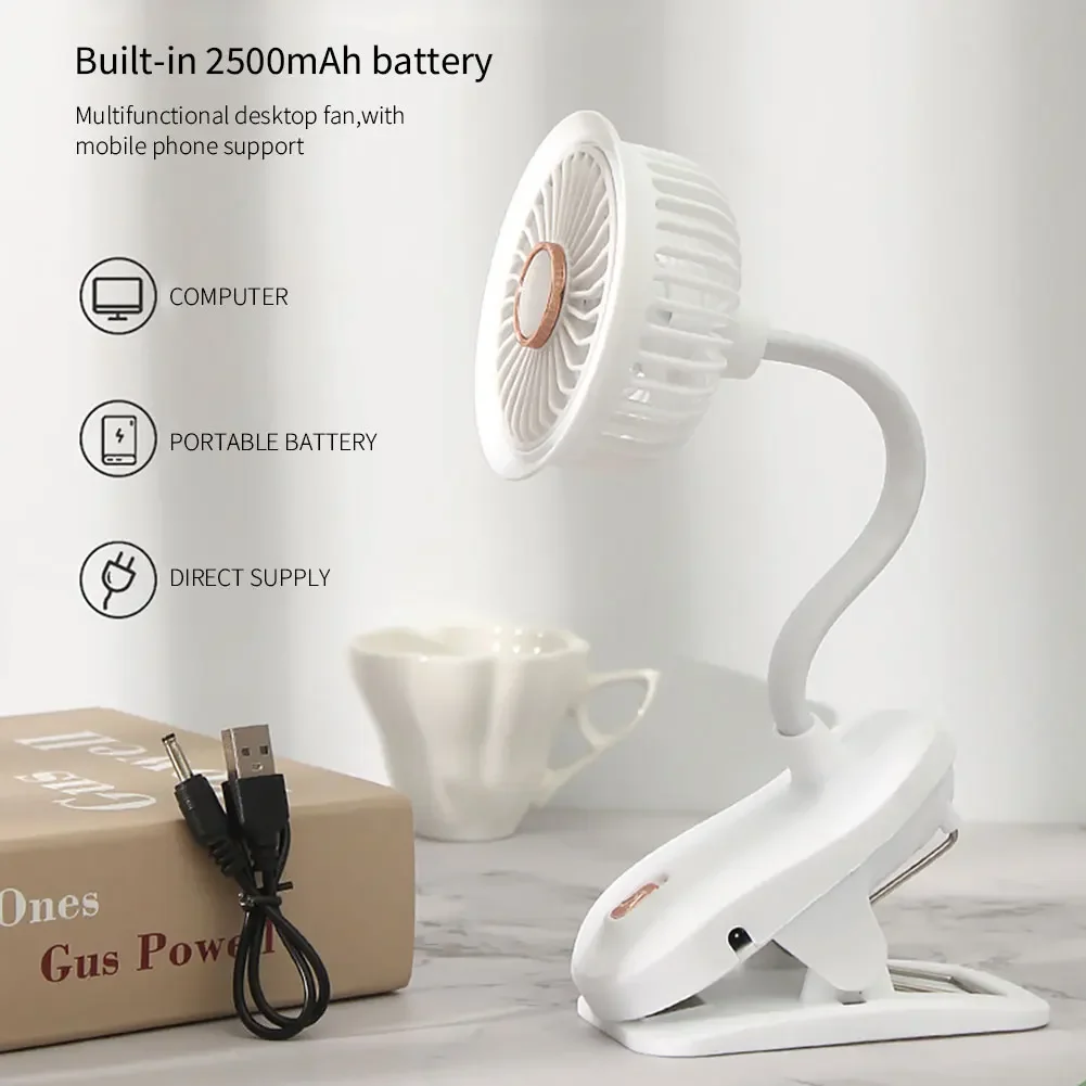 Portable Handheld USB Fan – Quiet, Rechargeable, Multi-Functional for Desk and Clip Use, Ideal for Students and Office