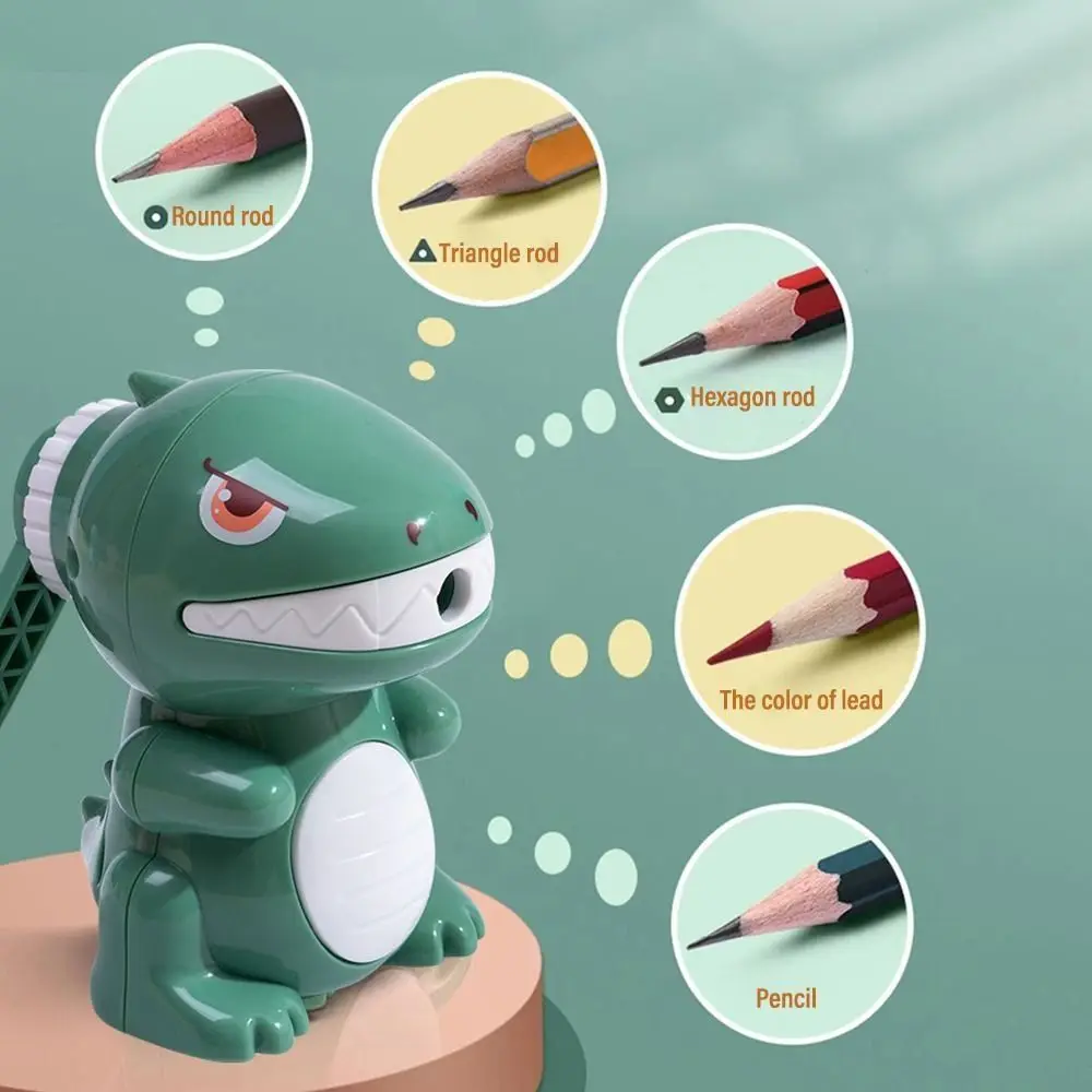 Add a bit of joy and functionality to your office or school supplies with this charming dinosaur-themed pencil sharpener. A creative addition that makes sharpening pencils fun for kids and adults alike!